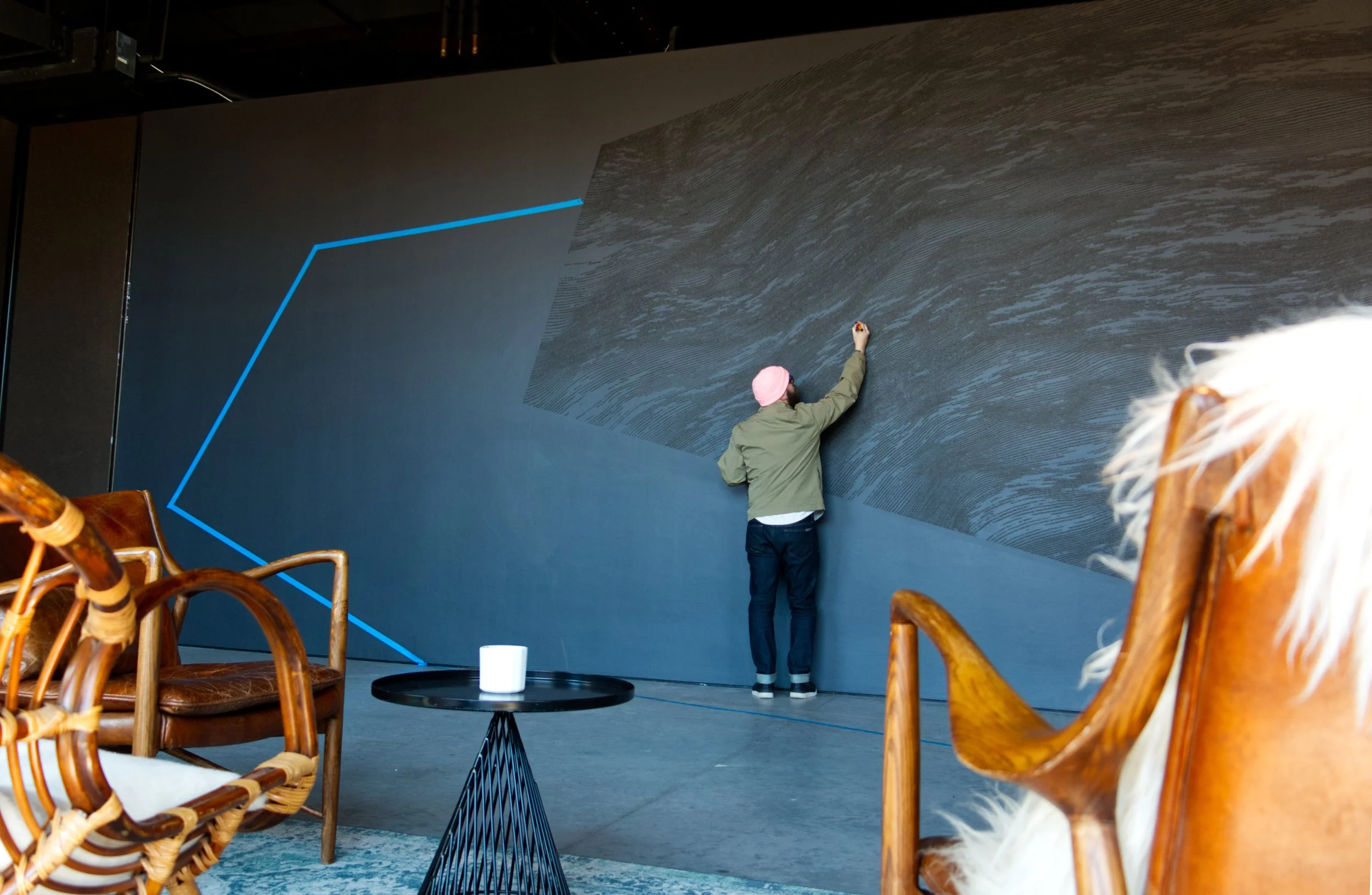 Monserrat Gallery, 12’ x 30’, 18-hour durational drawing